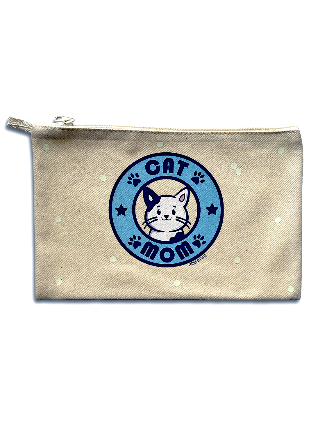 ESTUCHERA de CATMOM. Tela de mezclilla con estampado y detalles que brillan en la oscuridad, forro por dentro